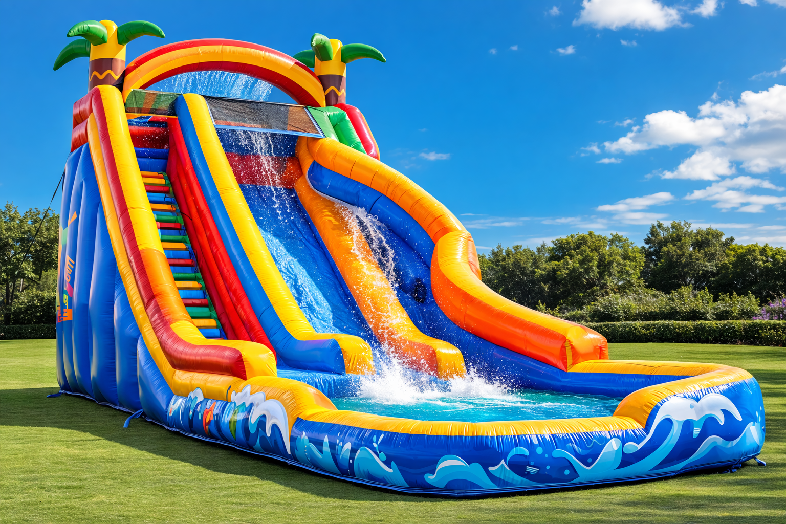 Children can climb up and slide down into refreshing water, creating hours of fun and laughter. The vibrant colors and playful design make it a favorite attraction for birthday parties, family events, and weekend gatherings.